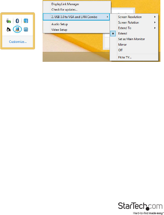 2. Click the DisplayLink® icon. You will see a “USB 3.0 to VGA and LAN Combo” option,